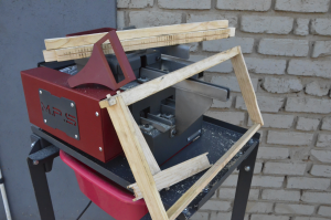 The well designed tray filler and sanitizer was used when Macridge was a ‘wet’ system operation. The kernel to be trayed is placed in the hopper and a shaker will spread the product thinly over the sieve, spray nozzles apply a sanitizer.