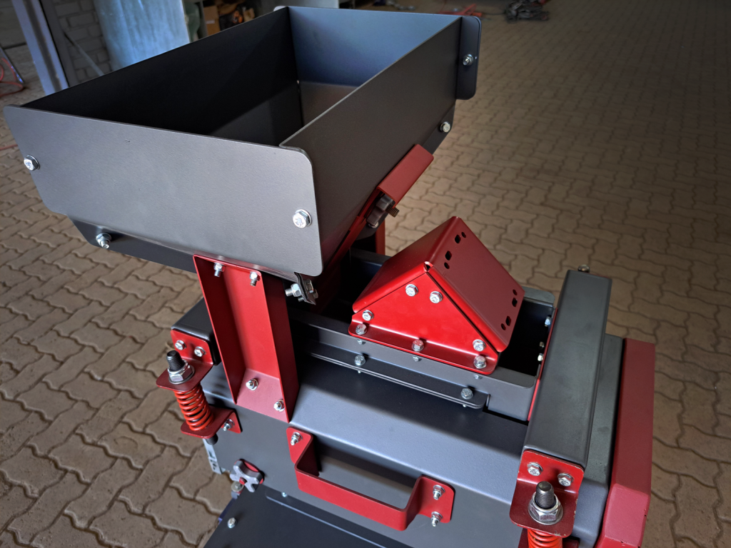 Our MINI ROLLER CRACKER comes equipped with a vibratory hopper feeder with a +/- 5 kg hopper capacity, fully adjustable pre-sizer that can accommodate all sizes ranging from 16mm – 30 mm, and fully adjustable cracking rolls with linear indicators that can be set to optimise on kernel recovery with minimal “NO CRACKS/RE-RUNS”, boasting an impressive cracking capacity of 180 kg p/h for this tiny footprint.